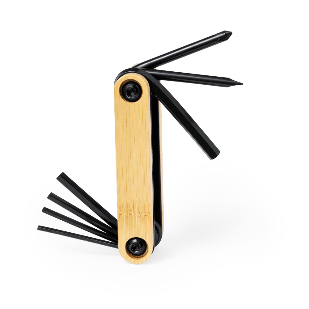Entdecken Sie das Multifunktionswerkzeug „Bärbel“ – Ihr unverzichtbarer Begleiter für jede Herausforderung. Mit seinen 7 Funktionen, darunter Inbusschlüssel und Schraubendreher, bietet es vielseitige Einsatzmöglichkeiten. Der ergonomische Bambusgriff sorgt für einen sicheren Halt und verleiht dem Werkzeug eine natürliche Ästhetik. Kompakt und handlich mit einer Größe von 3,2 x 9,8 x 2 cm, passt „Bärbel“ mühelos in jede Tasche. Hergestellt aus robustem Metall und nachhaltigem Bambus, vereint es Langlebigkeit und Umweltbewusstsein. Ideal für Heimwerker und Profis, die Wert auf Qualität und Funktionalität legen. Herkunftsland: China.