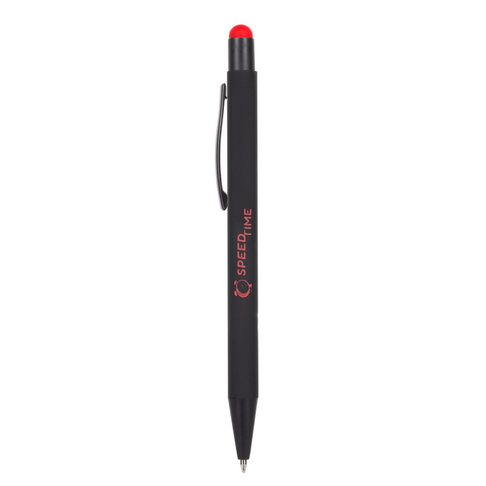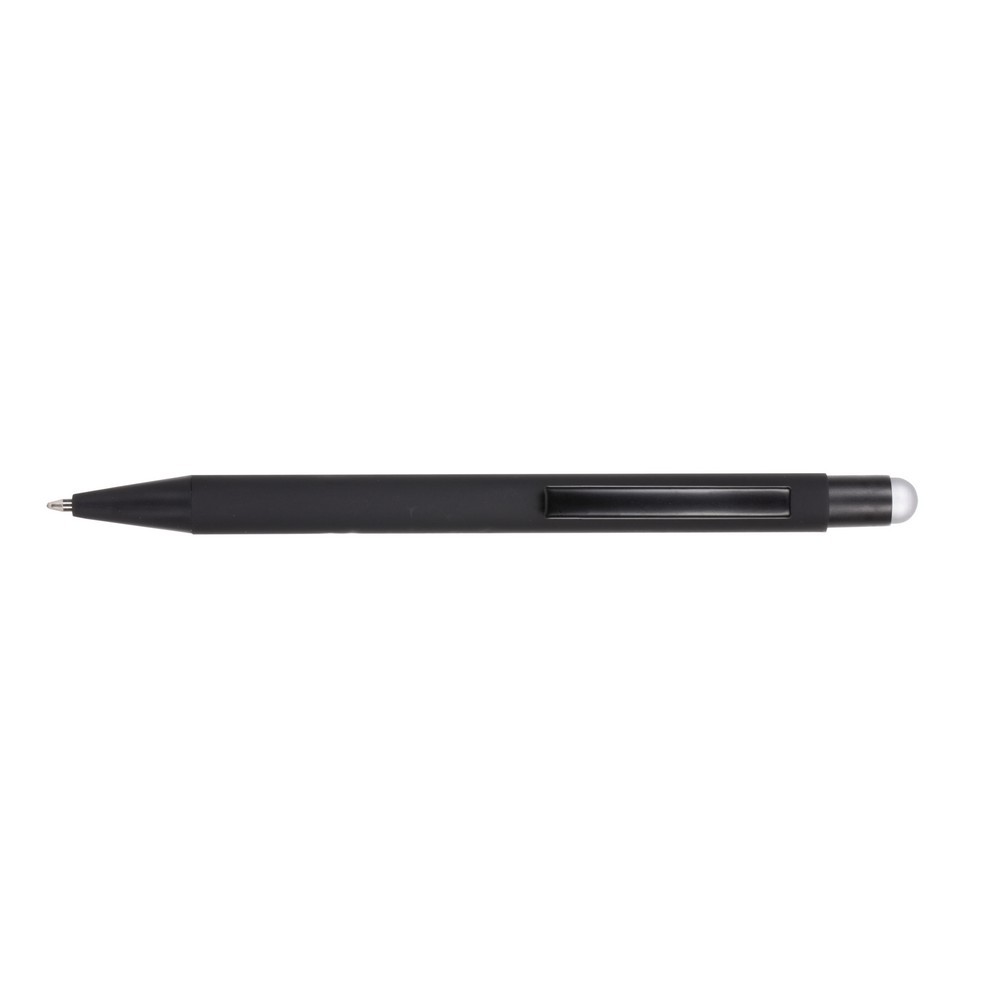 Der Touchpen Kugelschreiber „Simplen“ ist ein elegantes und praktisches Schreibgerät für den modernen Alltag. Mit seiner Kombination aus Kugelschreiber und Touchpen ermöglicht er ein müheloses Schreiben auf Papier und Touchscreens. Der schwarze Gummikörper liegt angenehm in der Hand und die gravierte Oberfläche passt perfekt zur Gummispitze. „Simplen“ ist der ideale Begleiter für alle, die Stil und Funktionalität schätzen.