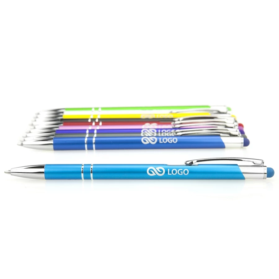 Der Touchpen Kugelschreiber „Theresa“ besticht durch seine farbenfrohe, sanft mattierte Metallhülle, die von glänzenden Silberelementen verziert wird. Ausgestattet mit einem reibungslosen Druckmechanismus und einem robusten Clip, lässt er sich leicht an Dokumenten oder der Jackentasche befestigen. Der Kugelschreiber verfügt über eine austauschbare Mine, was eine langjährige Nutzung ermöglicht. Mit der Option einer Lasergravur von Logo oder Wunschtext auf der Hülle, wird „Theresa“ zu einem praktischen Werbegeschenk für Ihr Unternehmen.