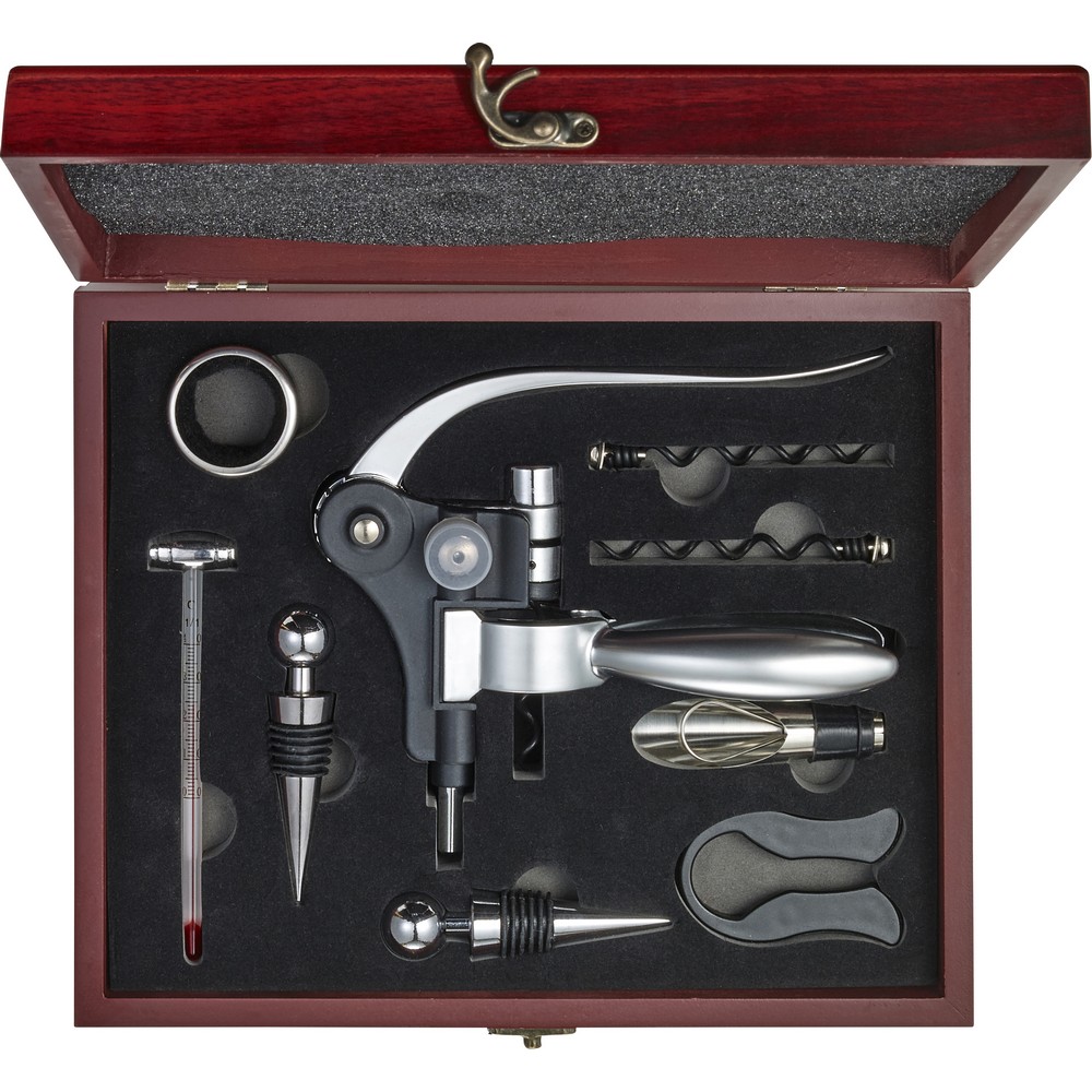 Entdecken Sie das exquisite Weinset „Jamaika“, das in einer eleganten Holzbox präsentiert wird. Dieses 7-teilige Set umfasst alles, was Sie für ein unvergessliches Weinerlebnis benötigen: zwei Flaschenverschlüsse, einen Tropfring, ein Thermometer, einen Folienabschneider, einen Trichter und einen Korkenzieher. Mit kompakten Maßen von 27 x 22,8 x 7 cm ist es der perfekte Begleiter für Weinliebhaber. Ob für gesellige Abende oder als stilvolles Geschenk – das Weinset „Jamaika“ vereint Funktionalität und Ästhetik in einem. Genießen Sie Ihre Weine in vollen Zügen!